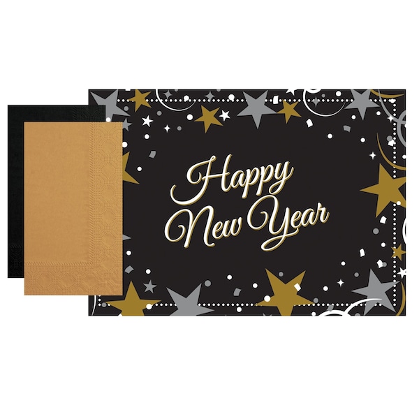 500 piece New Year's party combo pack (250 placemats, 250 napkins)