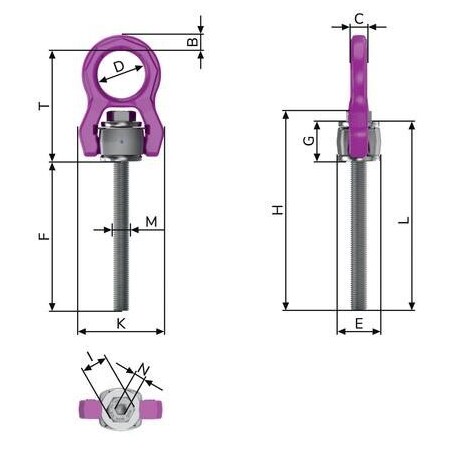 Safety Swivel Hoist Ring, 34 Long In UBar Dia, 078 In Thread Protrusion, 2,500 Lb Rated Load, 46644