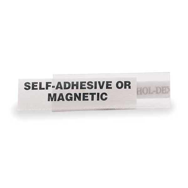 Label Holder, Color Clear, Finish Matte, Label Attachment Type Slide-In, Material Plastic, Mounting Type Self-Adhesive, Number of Label Holders 12, Overall Length 6 in, Overall Width 3/4 in, Product Type Label Holder, Series L, Package Quantity 25