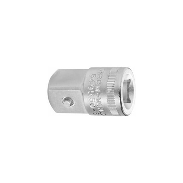 External and internal square drives to DIN 3120. Forged external square drives with spring-mounted balls or pins, internal square drives with hole or snap grooves. Increaser piece Standard: DIN 3123-A Material: Chrome vanadium steel, chrome-plated. Drive square x: 1/2 in Drive square y: 3/4 in