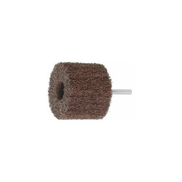 Flap strips of fleece around the shank of the tool. Shank 6 mm. Fleece impregnated with Aluminium Oxide A. Creates a consistent matt finish. Application: For removal of dirt and oxide layers on metals as well as for matt finishing of Cr-Ni, other stainless steels, and also non-ferrous metals. Grinding medium code: A Grit equivalent: 100 recommended speed: 5000 min-1 maximum speed: 9000 min-1