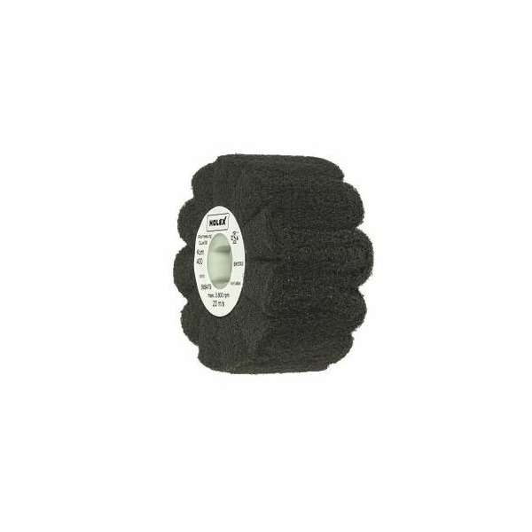 Standard size 100x100 mm or narrow version 100x50 mm for grinding smaller areas. Mounting bore 19 mm with multiple splines. Sinusoidal abrasive fleece without cut edges. Impregnated with silicon carbide SiC. Application: For matting and polishing without abrupt changes in texture. Note: For matching the width of narrow rollers 100x50 mm use the spacer ring pack No. 568439. Iron, sulphur and chlorine constituents: < 0.1 % Grinding media backing: Cleaning non-woven abrasive mesh recommended speed: 2800 min-1