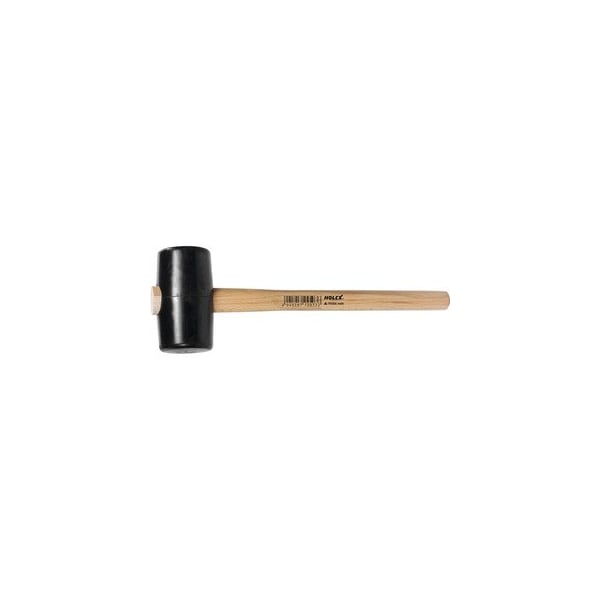 Rubber Hammer, Black, Face Dia: 40 mm. Version: Made of tough rubber 90 Shore- non-rebound- with powerful impact. Worn faces can be reworked by turning on a lathe. With ash wood handle. Standard: DIN 5128 Spare part: Spare handle available under No. 755600. Head length: 80 mm Head Dia: 40 mm Handle length: 260 mm Weight: 150 g