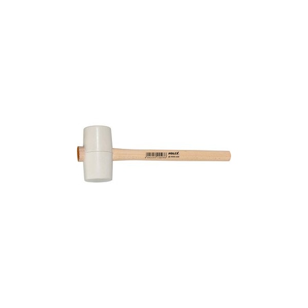 Rubber Hammer, White, Face Dia: 90 mm. Version: Made of tough rubber 90 Shore- non-rebound- with powerful impact. Worn faces can be reworked by turning on a lathe. With ash wood handle. White rubber face for working without formation of streaks. Standard: DIN 5128 Spare part: Spare handle available under No. 755600. Head length: 140 mm Head Dia: 90 mm Handle length: 380 mm Weight: 1150 g