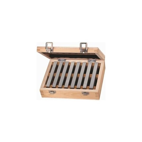 Ground in pairs, hardness 60 HRC. Accuracy: height tolerance ± 0.01 mm, width tolerance ± 0.02 mm. Application: In high precision work for parallel mounting of components in machine vices or jigs. Number of strips: 8 pair Width: 8 mm Height: 17 mm Height: 22 mm Height: 36 mm Height: 32 mm