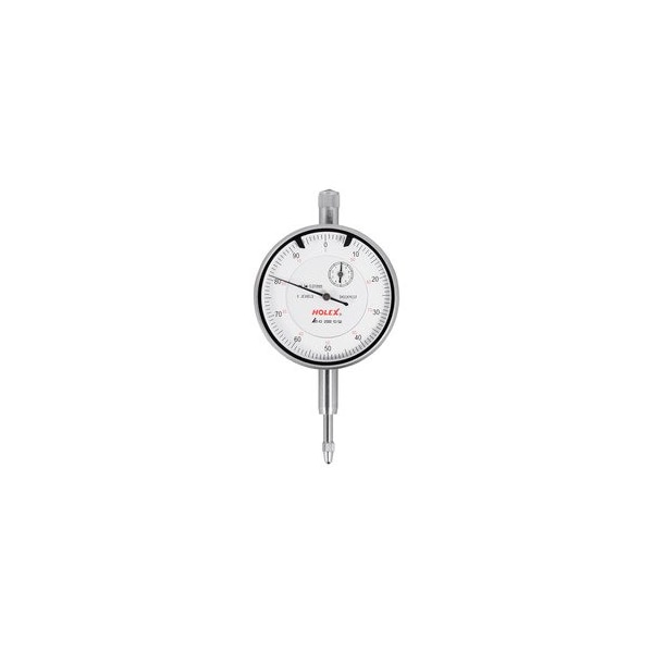 Shock-resistant Precision Dial Indicator, 0 to 10 mm. Version: Dimensions to DIN EN ISO 463- issue June 2006. Shock-resistant precision dial indicators. Clamping shank Dia 8 mm h6- hardened and ground. Outer ring of dial face can be rotated to zero the dial. Outer ring with 2 adjustable tolerance pointers. Central pointer for 1/100 mm reading- small pointer on sub-scale for 1 mm reading. Shock-resistant by gear rack sleeve. Full metal version with plastic dial glass. Standard: Shock-resistant precision dial indicators. Clamping shank Dia 8 mm h6- hardened and ground. Outer ring of dial face can be rotated to zero the dial. Outer ring with 2 adjustable tolerance pointers. Central pointer for 1/100 mm reading- small pointer on sub-scale for 1 mm reading. Packaging: sturdy box Standard: DIN 878 Graduation: 0.01 mm Reading per pointer revolution: 1 mm Gauging force: 0.7 - 1.5 N