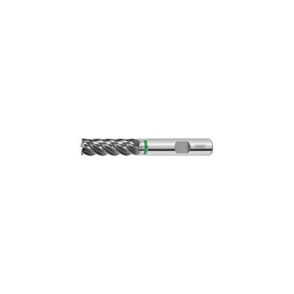 High-performance end mill for general-purpose applications, specially designed for TPC applications. Strengthened core. optimized bending strength due to the use of ultra-fine grain substrates. Offset chip breakers for controlled chip breaking. Note: hmax: The values stated in the table are maximum values. For finishing operations we recommend items No. 204012, 204014 and 204015. ae max = 0.07xD for TPC machining. Tolerance nominal Dia. f8 No. of teeth Z: 5 Helix angle: 40 degrees Direction of infeed: horizontal and oblique Shank: DIN 6535 HB to h6 Balance quality with shank: G 2.5 with HB No. of teeth Z: 5 Flute length Lc: 30 mm Overhang length L1 incl. recess: 35 mm Recess Dia. D1: 9.8 mm Overall length L: 80 mm Shank Dia. Ds: 10 mm