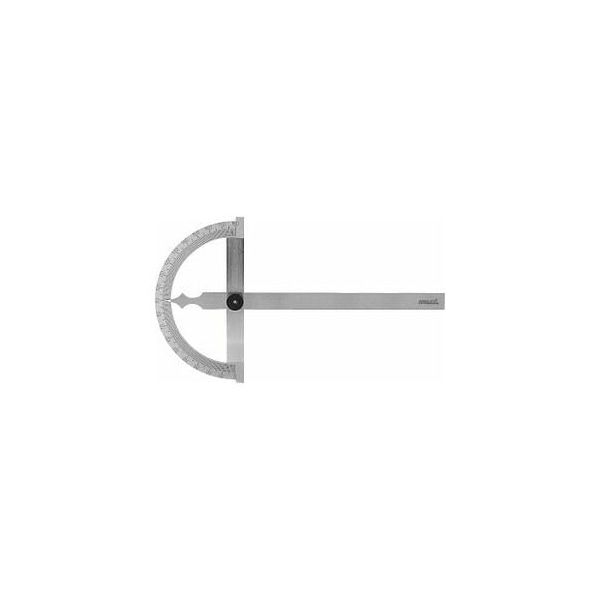 Open semicircular graduated arc with graduation 0 180 Deg, reading 1 Deg. Non-glare matte chrome-plated scale. With clamping nut.