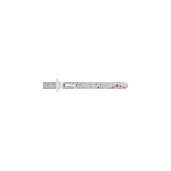 Made of Stainless Spring Steel. Metric / Inch conversion table on the back. Removable sliding clip can be used as a retainer and as a depth gauge. Material: Stainless steel- INOX