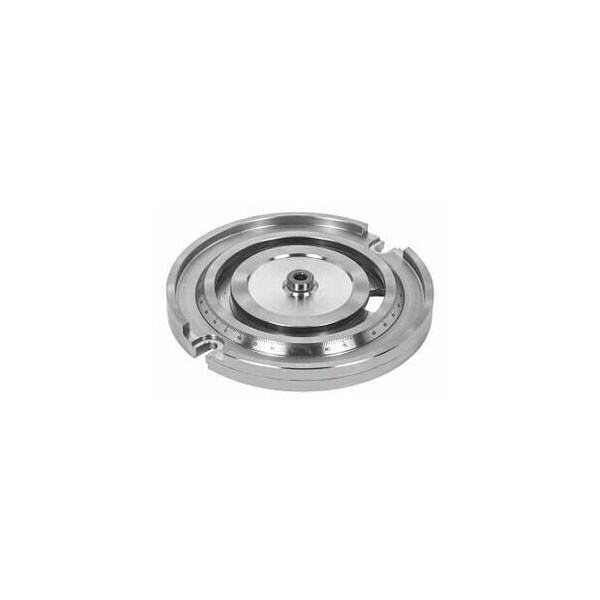 Feature: Bearing edge ground, 360 Deg graduations for angular adjustment, 20H7 fixing slot. Suitable for: High-pressure vice No. 362075. Supplied with: With securing screws and Tee-nuts. External Dia: 280 mm Clamping slot: 14 mm suitable for color code: High press. vices
