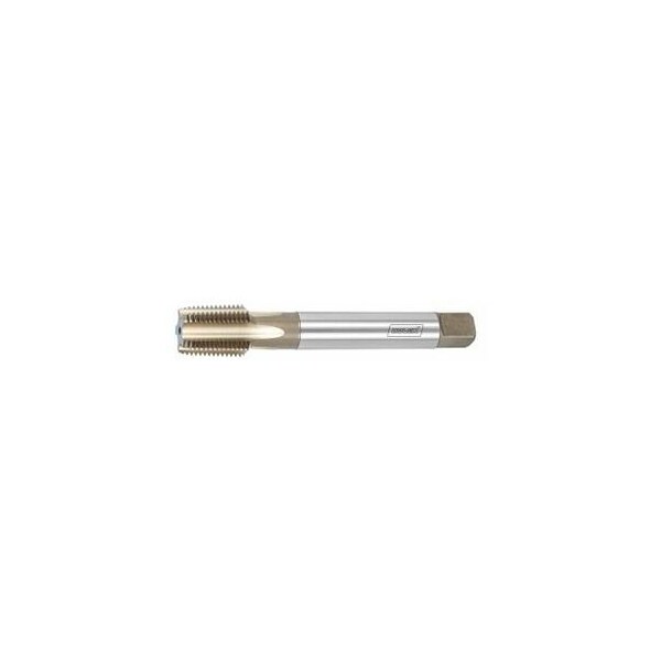 HOLEX Clever Tap: Sturdy tap for conventional standard applications. High-quality HSS-E tool material and geometry for steels. Surface: Bronze-colored tempered thread profile. Application: Tapered pipe threads NPT to ANSI B1.20.1, for threads with sealants. See the table for the specified minimum size of the tapping hole. Recommendation: Tapping hole Dia. A: Pre-drill a plain hole, do not use a reamer. Tapping hole Dia. B: Pre-drill a plain hole then ream it using a 1:16 taper reamer see No. 162650. The taper bore Dia. can then be checked laterally by reference to the Dmax check dimension see table. Variant B for drilling the tapping hole offers the best process reliability for the tapping operation. Threads per inch: 18 Overall length L: 100 mm Shank Dia. Ds: 12 mm Shank square: 9 mm Tapping hole Dia. A: 9/16 in Tapping hole Dia. B: 14.1 mm