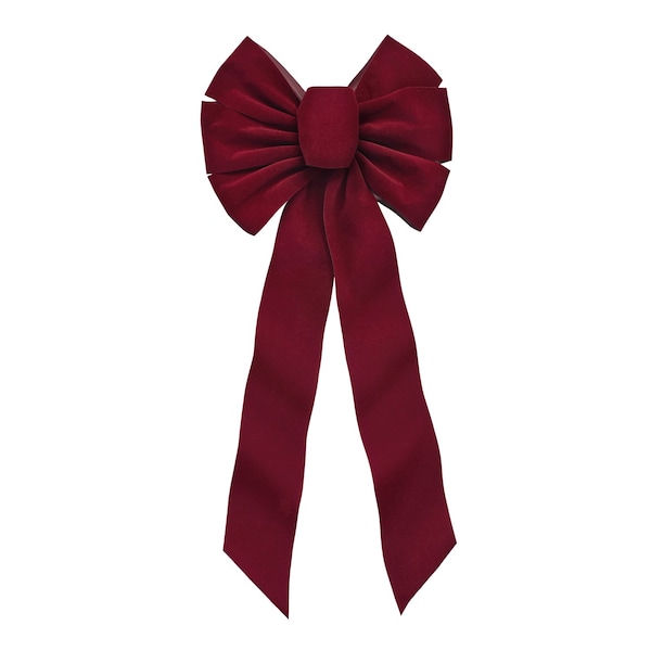 Holiday Trims Burgundy 7 Loop Christmas Bow 10 in.