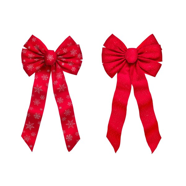 Holiday Trims Red/Silver Fancy Glitter Christmas Bow 12 in.