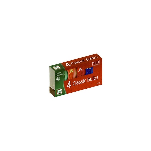 Christmas Lights Replacement Bulb, C7, Multi-Color Transparent, 4PK