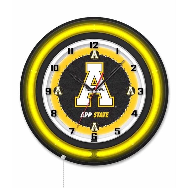 Our double neon Logo Clocks are the perfect way to show your school pride. Featuring a Black casing and a team color specific neon outer ring that accents the custom printed clock face which is lit up by an brilliant white, inner neon ring. The Neon rings are easily turned on and off with a pull chain on the bottom of the clock, and are powered by a UL Listed power transformer that runs off standard 120V outlet. Accurate quartz movement ensures proper time and is powered by a single, AA battery not included. Whether purchasing as a gift for a recent grad, sports super fan, or for yourself, you can take satisfaction knowing you're buying a clock that is proudly made by the Holland Bar Stool Company in Holland, MI