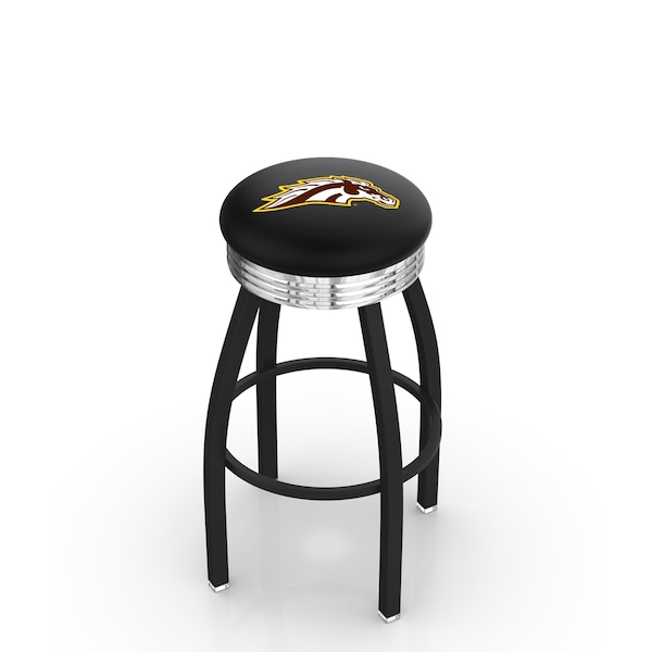 Made for the ultimate sports fan, you will be proud to show where your loyalty lies with this impressive Officially Licensed stool from the Holland Bar Stool Co. This classic L8B3C swivel stool features a single-ring black wrinkle base with a 2 1/2" thick cushion sitting on top of a 2.75" chrome ribbed ring that conceals the swivel for an exceptionally clean look. A state of the art print process is used in applying specially formulated UV vinyl ink in numerous stages to produce a sharp, crisp, clear image to ensure a perfect reproduction of the logo. You won't find a higher quality logo stool on the market. The frame is made from commercial quality 16 gauge, 1 1/4 inch tube steel with solid mig welded joints to guarantee strength and durability. The powder coated finish resists chips and scratches and ensures a long-lasting, rich appearance. The cushion seats are of the highest quality as well, utilizing a breathable, commercial grade vinyl. At the heart of the cushion is highly-dense foam that provides maximum support and will not breakdown in a couple years. If you're going to finish your bar, game room, or man cave do it right- with a logo stool made by the Holland Bar Stool Co.