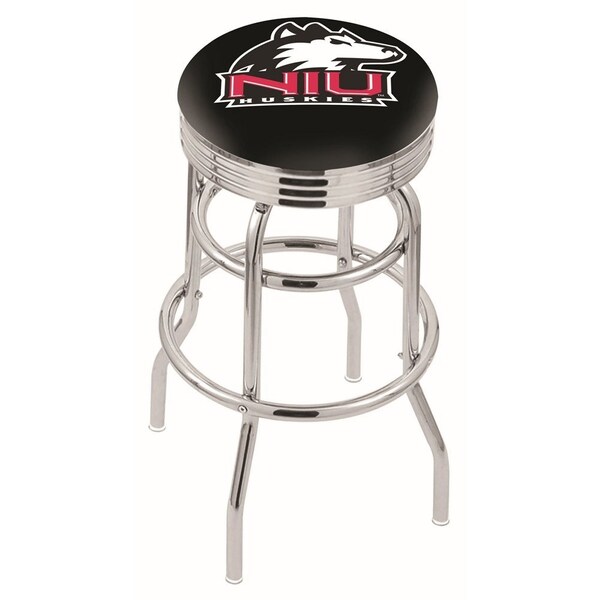 25" Chrome 2-Ring Northern Illinois Swivel Bar Stool, Accent Ring