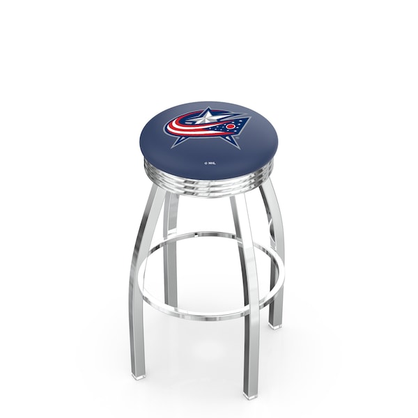 25" Chrome Columbus Blue Jackets Swivel Bar Stool, Accent Ring