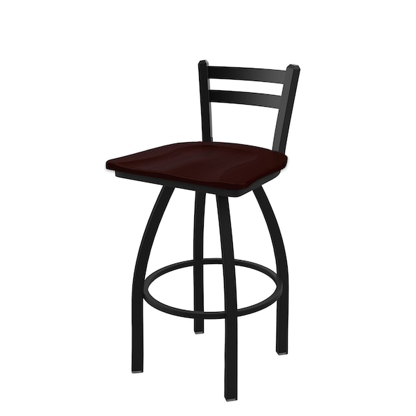 25" Low Back Swivel Counter Stool, Black Wrinkle, Dark Cherry Oak Seat