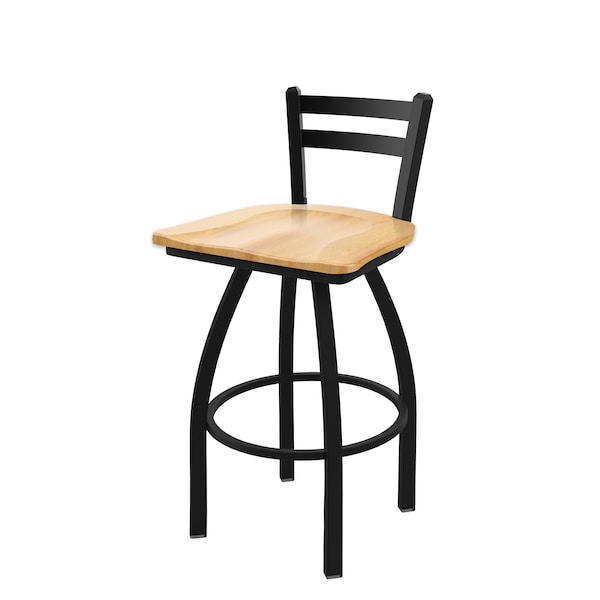 25" Low Back Swivel Counter Stool, Black Wrinkle, Nat Maple Seat