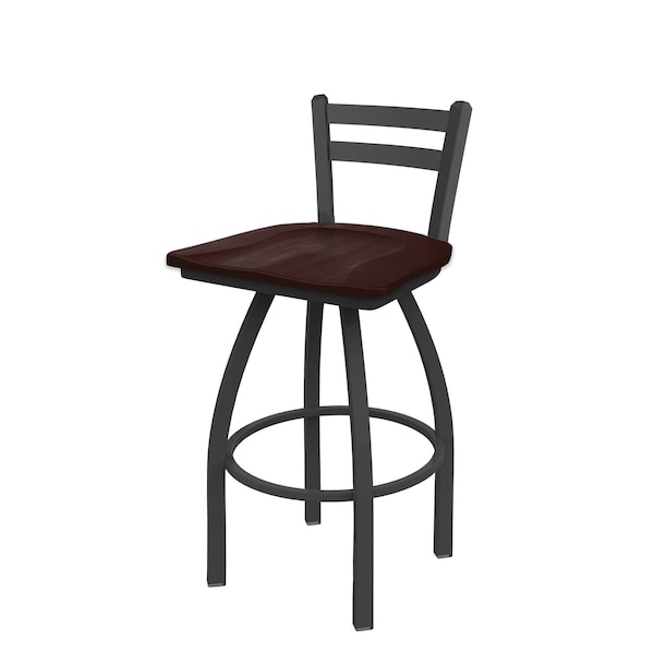 25" Low Back Swivel Counter Stool, Pewter Finish, Dark Cherry Maple Seat