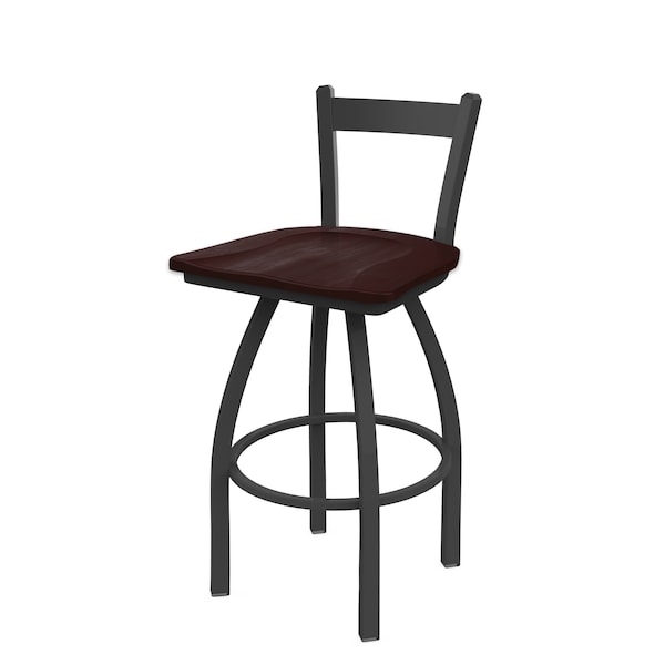 25" Low Back Swivel Counter Stool, Pewter Finish, Dark Cherry Maple Seat