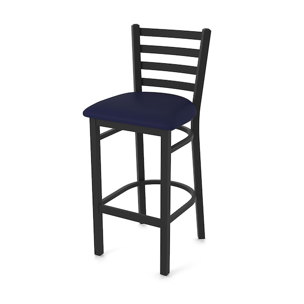 Customize your very own counter stool with the help of the Holland Bar Stool Co. This Black Wrinkle Jackie counter stool has a contemporary design and provides superb back support for exceptional comfort. The frame is made from commercial quality 16 gauge, 1 1/4 inch tube steel with solid mig welded joints to guarantee strength and durability. The powder coated finish resists chips and scratches and ensures a long-lasting, rich appearance. The wood seats are 1 1/4 inch solid hardwood (oak or maple) and are dished for amazing posterior comfort, making sitting for minutes or hours a pleasure. The cushion seats are of the highest quality as well, utilizing a breathable, commercial grade vinyl or fabric. At the heart of the cushion is 2 1/2 inches of highly-dense foam that provides maximum support and will not breakdown in a couple years. You won't find a higher quality counter stool on the market. If you are going to finish your dining area or just need a side counter stool - do it right, with a counter stool from the Holland Bar Stool Co.
