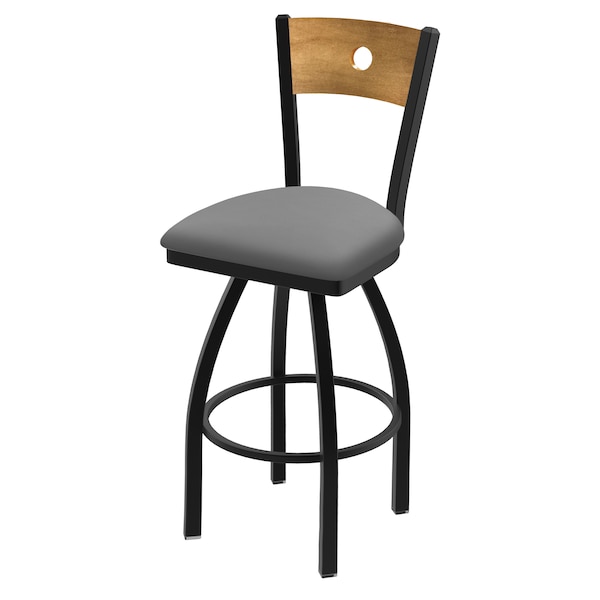 Customize your very own counter stool with the help of the Holland Bar Stool Co. This Black Wrinkle Voltaire swivel counter stool has a contemporary design featuring a stylish wood back available with a natural or medium finish. The frame is made from commercial quality 16 gauge, 1 1/4 inch tube steel with solid mig welded joints to guarantee strength and durability. The powder coated finish resists chips and scratches and ensures a long-lasting, rich appearance. The wood seats are 1 1/4 inch solid hardwood and are dished for amazing posterior comfort, making sitting for minutes or hours a pleasure. The cushion seats are of the highest quality as well, utilizing a breathable, commercial grade vinyl or fabric. At the heart of the cushion is 2 1/2 inches of highly-dense foam that provides maximum support and will not breakdown in a couple years. You won't find a higher quality stool on the market. If you are going to finish your bar or dining area - do it right, with a stool from the Holland Bar Stool Co.