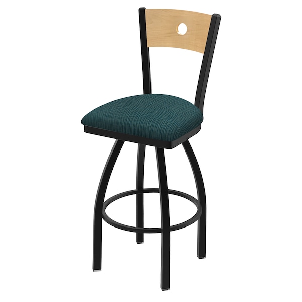 Customize your very own counter stool with the help of the Holland Bar Stool Co. This Black Wrinkle Voltaire swivel counter stool has a contemporary design featuring a stylish wood back available with a natural or medium finish. The frame is made from commercial quality 16 gauge, 1 1/4 inch tube steel with solid mig welded joints to guarantee strength and durability. The powder coated finish resists chips and scratches and ensures a long-lasting, rich appearance. The wood seats are 1 1/4 inch solid hardwood and are dished for amazing posterior comfort, making sitting for minutes or hours a pleasure. The cushion seats are of the highest quality as well, utilizing a breathable, commercial grade vinyl or fabric. At the heart of the cushion is 2 1/2 inches of highly-dense foam that provides maximum support and will not breakdown in a couple years. You won't find a higher quality stool on the market. If you are going to finish your bar or dining area - do it right, with a stool from the Holland Bar Stool Co.