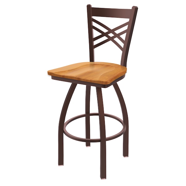 25" Swivel Counter Stool, Bronze Finish, Med Maple Seat