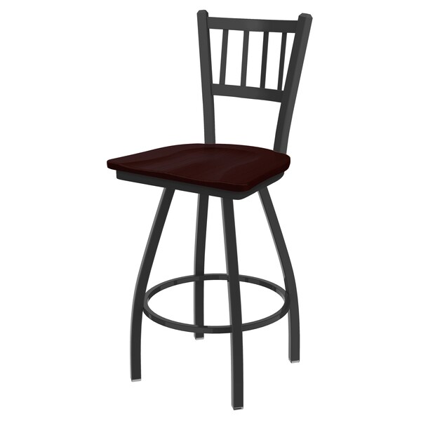 25" Swivel Counter Stool, Pewter Finish, Dark Cherry Oak Seat