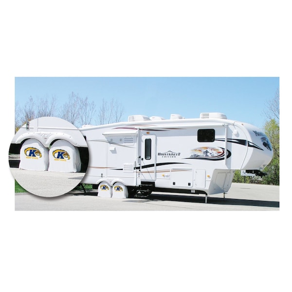 This Kent State tire shade from the Holland Bar Stool Co. is hand-made. A state of the art printing process utilizing UV resistant inks ensures the most detailed, durable image possible able to withstand direct sun exposure and still look great year after year. The Commercial Grade, Marine vinyl holds up in even the harshest weather conditions. Each shade is made to order for an exact fit to your specific tire size. Support your team and protect your expensive tires in total style with the help of an American Made Product from the Holland Bar Stool Co! This product is Officially Licensed.