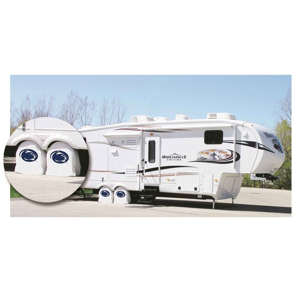 This Penn State tire shade from the Holland Bar Stool Co. is hand-made. A state of the art printing process utilizing UV resistant inks ensures the most detailed, durable image possible able to withstand direct sun exposure and still look great year after year. The Commercial Grade, Marine vinyl holds up in even the harshest weather conditions. Each shade is made to order for an exact fit to your specific tire size. Support your team and protect your expensive tires in total style with the help of an American Made Product from the Holland Bar Stool Co! This product is Officially Licensed.