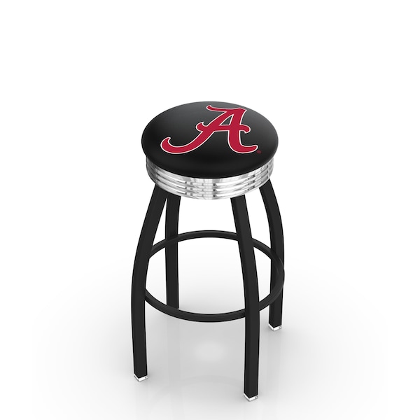 Made for the ultimate sports fan, you will be proud to show where your loyalty lies with this impressive Officially Licensed stool from the Holland Bar Stool Co. This classic L8B3C swivel stool features a single-ring black wrinkle base with a 2 1/2" thick cushion sitting on top of a 2.75" chrome ribbed ring that conceals the swivel for an exceptionally clean look. A state of the art print process is used in applying specially formulated UV vinyl ink in numerous stages to produce a sharp, crisp, clear image to ensure a perfect reproduction of the logo. You won't find a higher quality logo stool on the market. The frame is made from commercial quality 16 gauge, 1 1/4 inch tube steel with solid mig welded joints to guarantee strength and durability. The powder coated finish resists chips and scratches and ensures a long-lasting, rich appearance. The cushion seats are of the highest quality as well, utilizing a breathable, commercial grade vinyl. At the heart of the cushion is highly-dense foam that provides maximum support and will not breakdown in a couple years. If you're going to finish your bar, game room, or man cave do it right- with a logo stool made by the Holland Bar Stool Co.