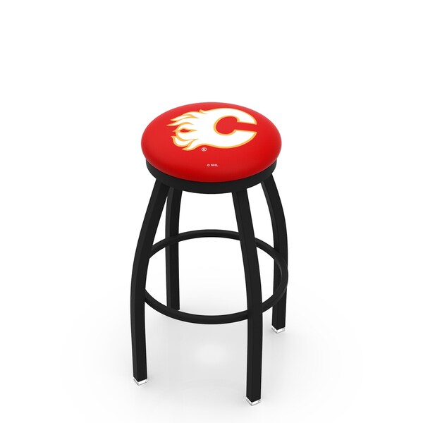 30" Blk Wrinkle Calgary Flames Swivel Bar Stool, Accent Ring