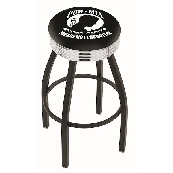 30" Blk Wrinkle POW/MIA Swivel Bar Stool, Chrome Ring