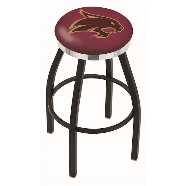 30" Blk Wrinkle Texas State Swivel Bar Stool, Chrome Ring
