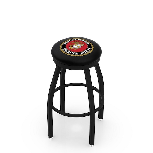 30" Blk Wrinkle U.S. Marines Swivel Bar Stool, Accent Ring