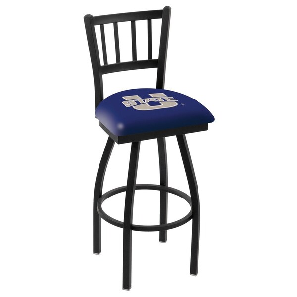 30" Blk Wrinkle Utah State Swivel Bar Stool, Jailhouse Back