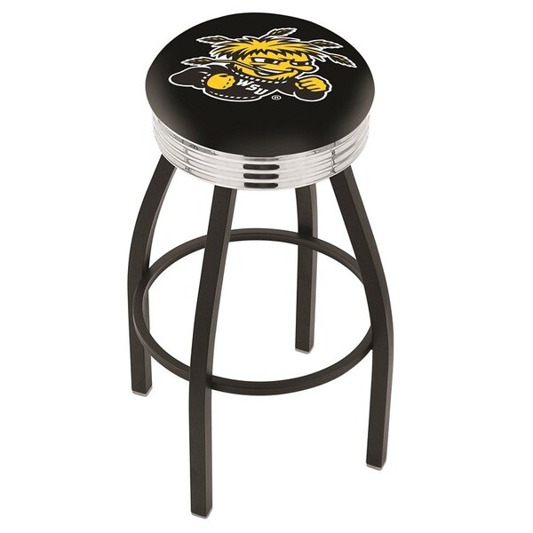 30" Blk Wrinkle Wichita State Swivel Bar Stool, Chrome Ring