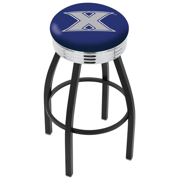 30" Blk Wrinkle Xavier Swivel Bar Stool, Chrome Ring
