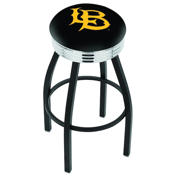 30" Blk Wrnkl Long Beach State University Swivel Bar Stool, Chrome Ring