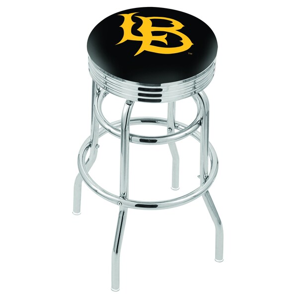 30" Chrome 2-Ring Long Beach State Univ Swivel Bar Stool, Accent Ring