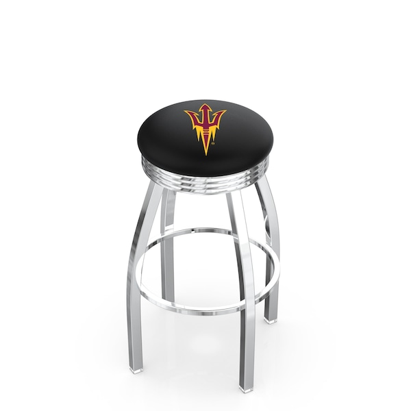 30" Chrome Arizona State Swivel Bar Stool, Accent Ring, Pitchfork