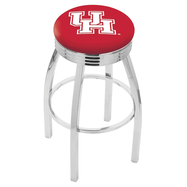 Made for the ultimate sports fan, you will be proud to show where your loyalty lies with this impressive Officially Licensed stool from the Holland Bar Stool Co. This classic L8C3C stool features a single-ring chrome base with a 2 1/2" thick cushion sitting on top of a 2.75" chrome ribbed ring that conceals the swivel for an exceptionally clean look. A state of the art print process is used in applying specially formulated UV vinyl ink in numerous stages to produce a sharp, crisp, clear image to ensure a perfect reproduction of the logo. You won't find a higher quality logo stool on the market. The frame is made from commercial quality 16 gauge, 1 1/4 inch tube steel with solid mig welded joints to guarantee strength and durability. The triple chrome plated finish resists chips and scratches and ensures a long-lasting, rich appearance. The cushion seats are of the highest quality as well, utilizing a breathable, commercial grade vinyl. At the heart of the cushion is highly-dense foam that provides maximum support and will not breakdown in a couple years. If you're going to finish your bar, game room, or man cave do it right- with a logo stool made by the Holland Bar Stool Co.