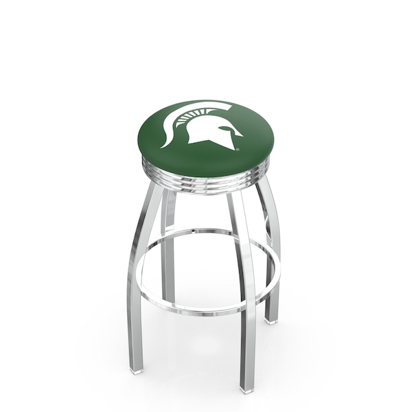 30" Chrome Michigan State Swivel Bar Stool, Accent Ring