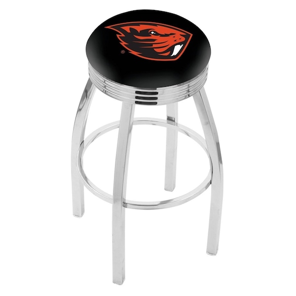 30" Chrome Oregon State Swivel Bar Stool, Accent Ring