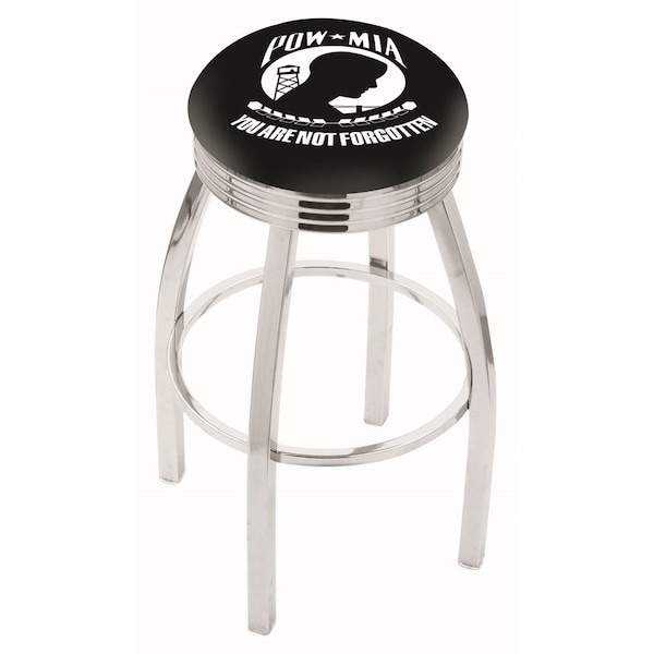 30" Chrome POW/MIA Swivel Bar Stool, Accent Ring