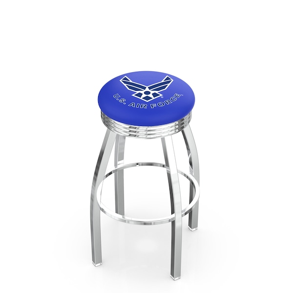30" Chrome U.S. Air Force Swivel Bar Stool, Accent Ring