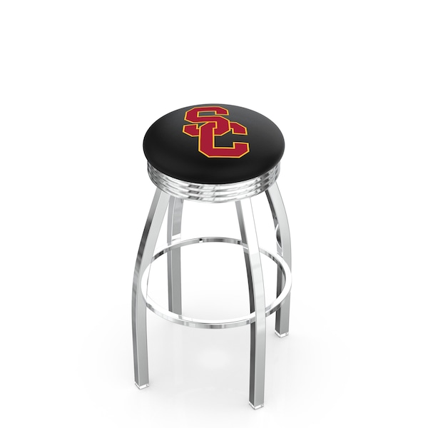 30" Chrome USC Trojans Swivel Bar Stool, Accent Ring